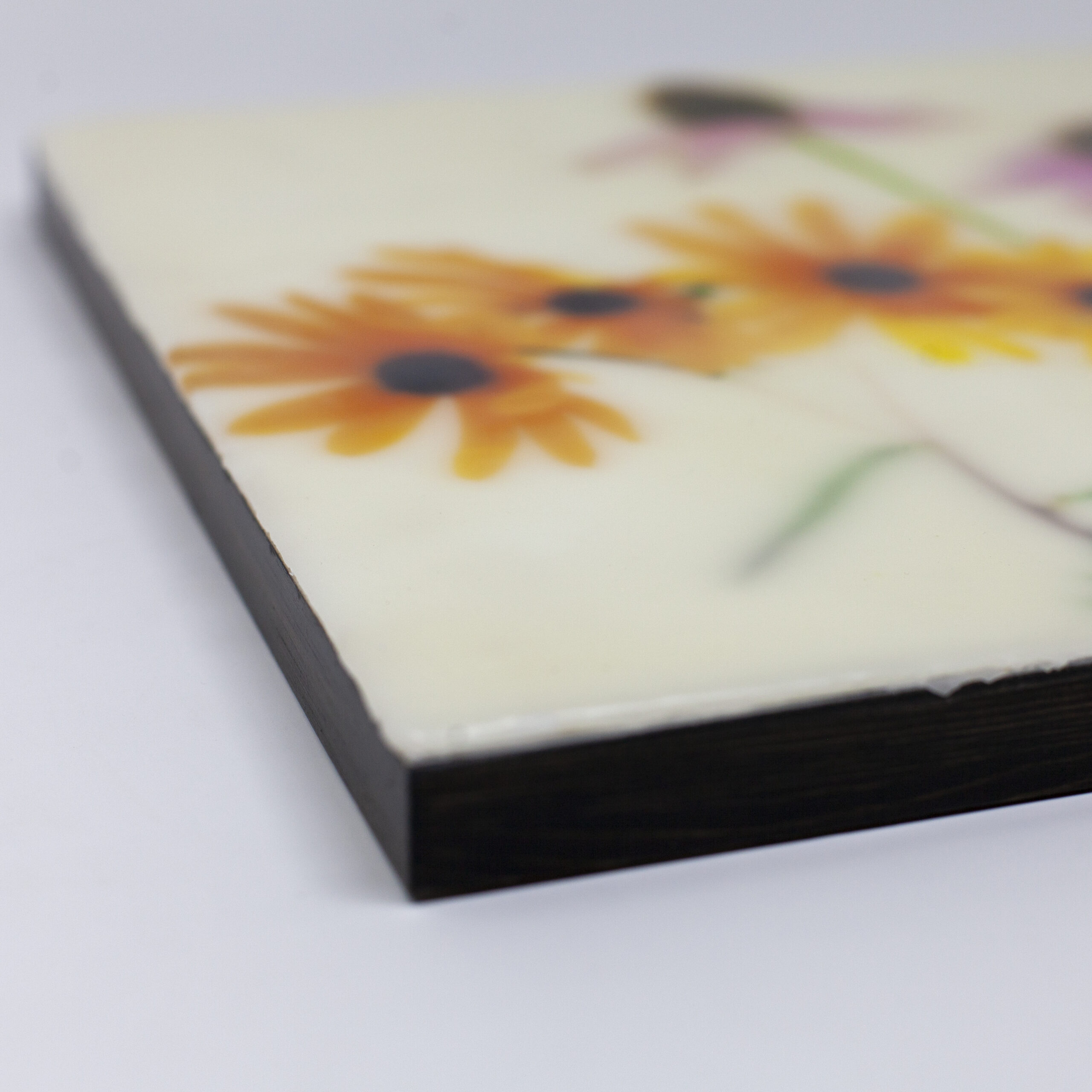 Botanical Photo Encaustic. Made from beeswax and damar resin, rice paper, wood panel, photography, 12″ x 12″.