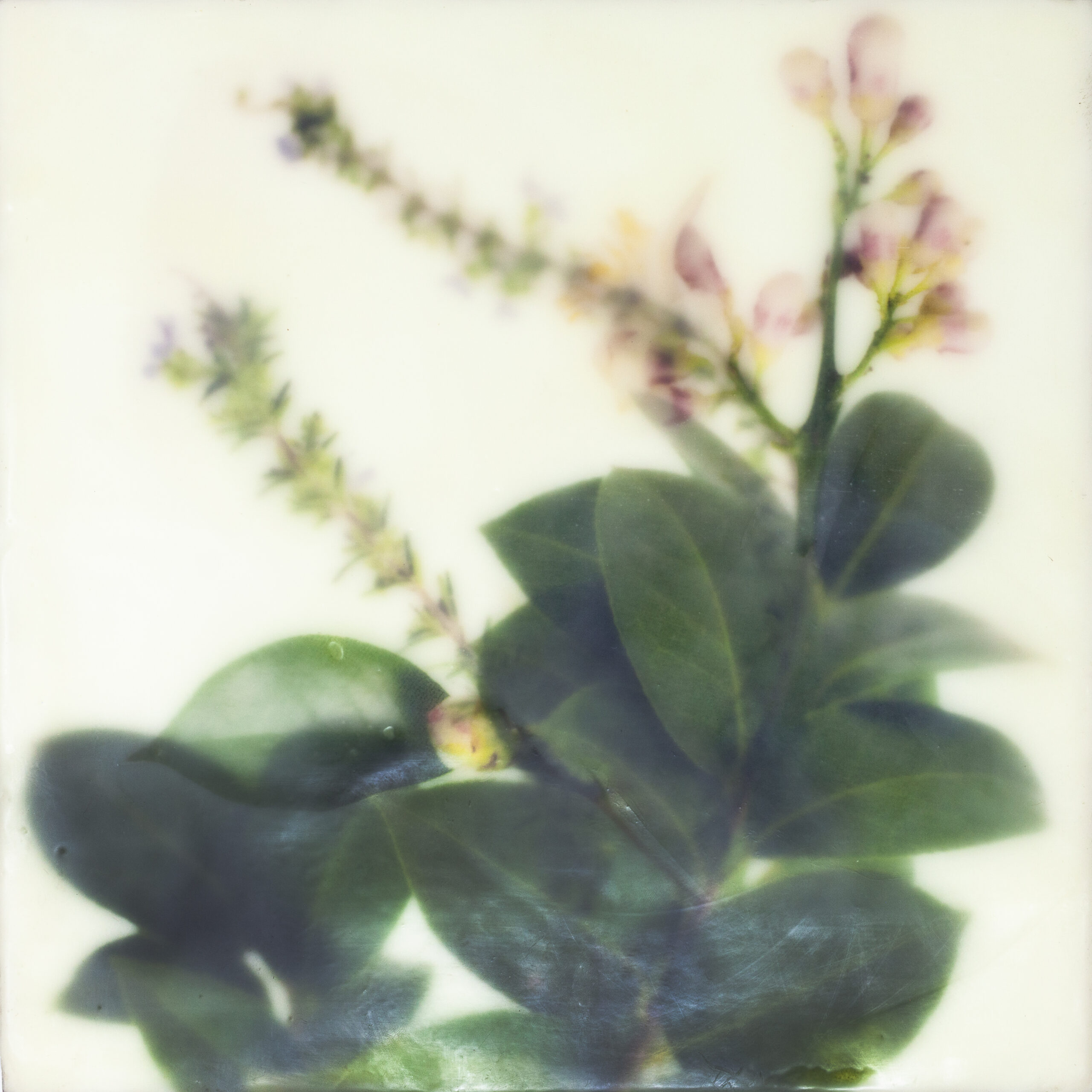 The best of spring flowers, camellia buds and lemon blooms with a touch of fall fragrance, georgia basil. This is an original work of camellia, lemon and georgia basil images. They were printed on rice paper and carefully layered with wax on a gesso hardboard panel.