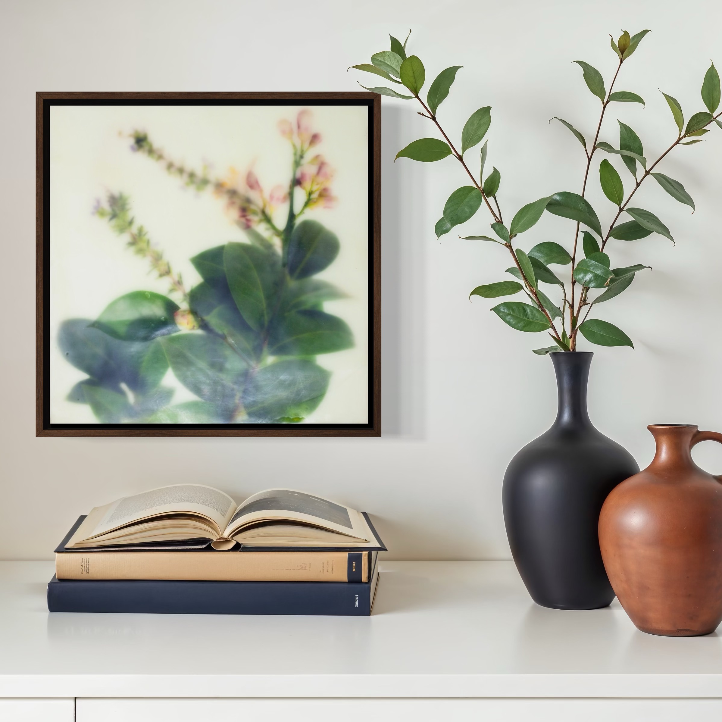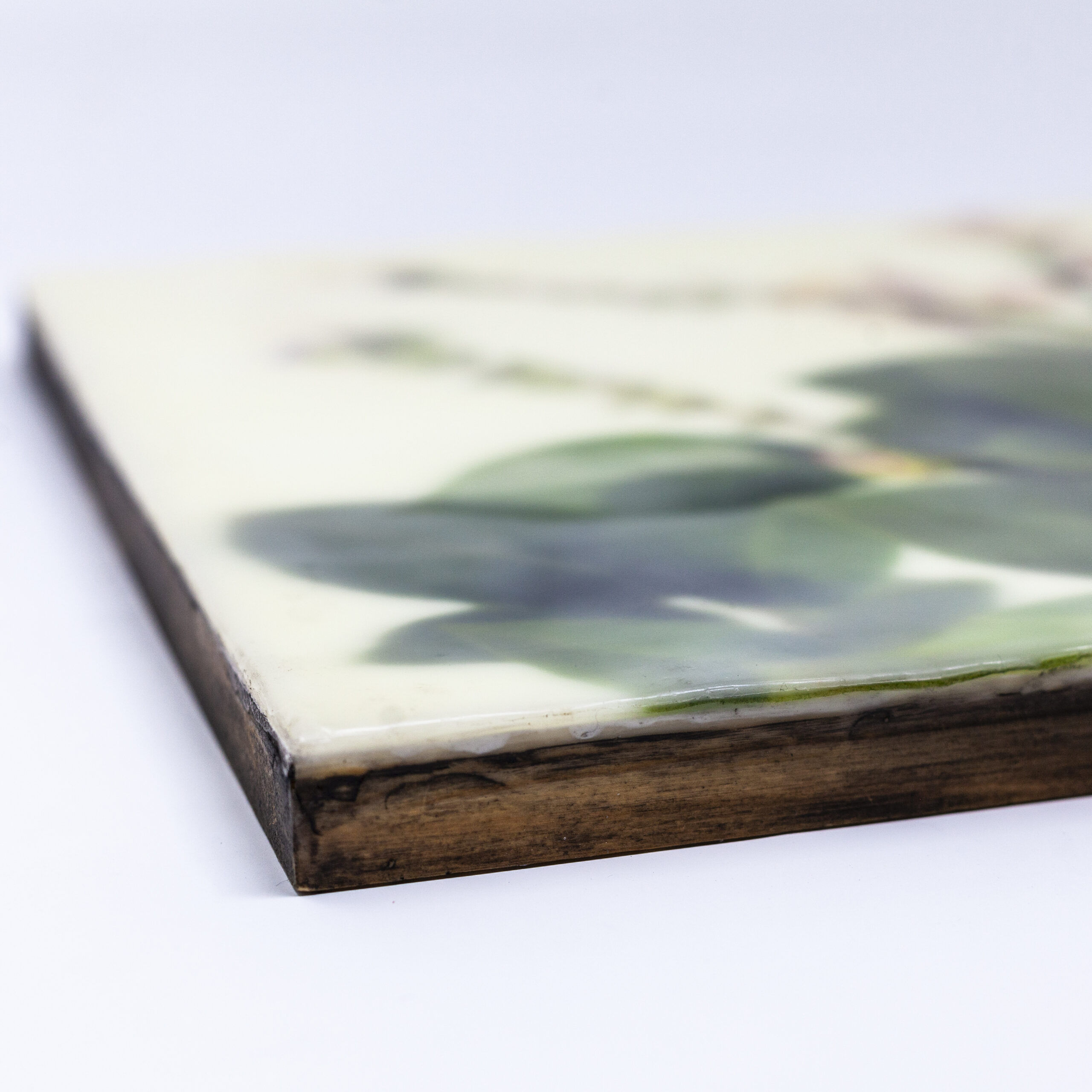 Botanical Photo Encaustic. encaustic wax, rice paper, wood panel, photography.