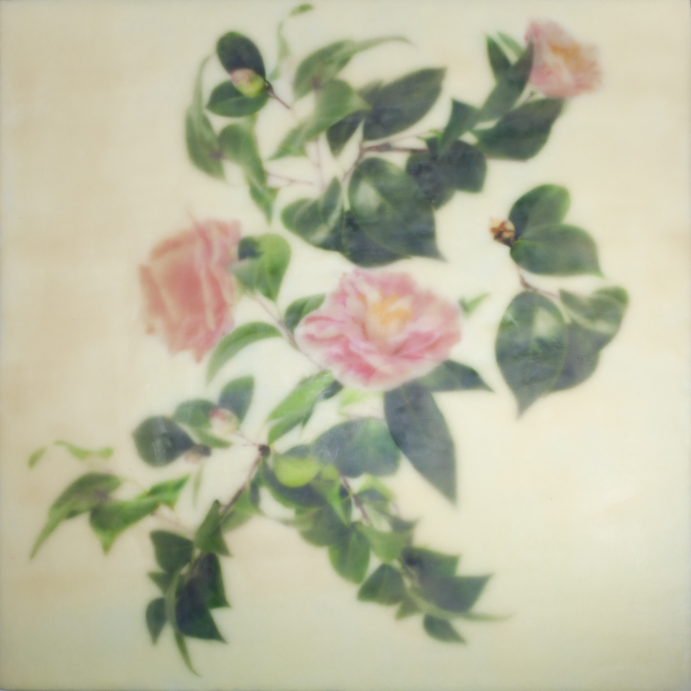 24″x24″. Botanical Photo Encaustic. encaustic wax, rice paper, mica powder, wood panel, photography