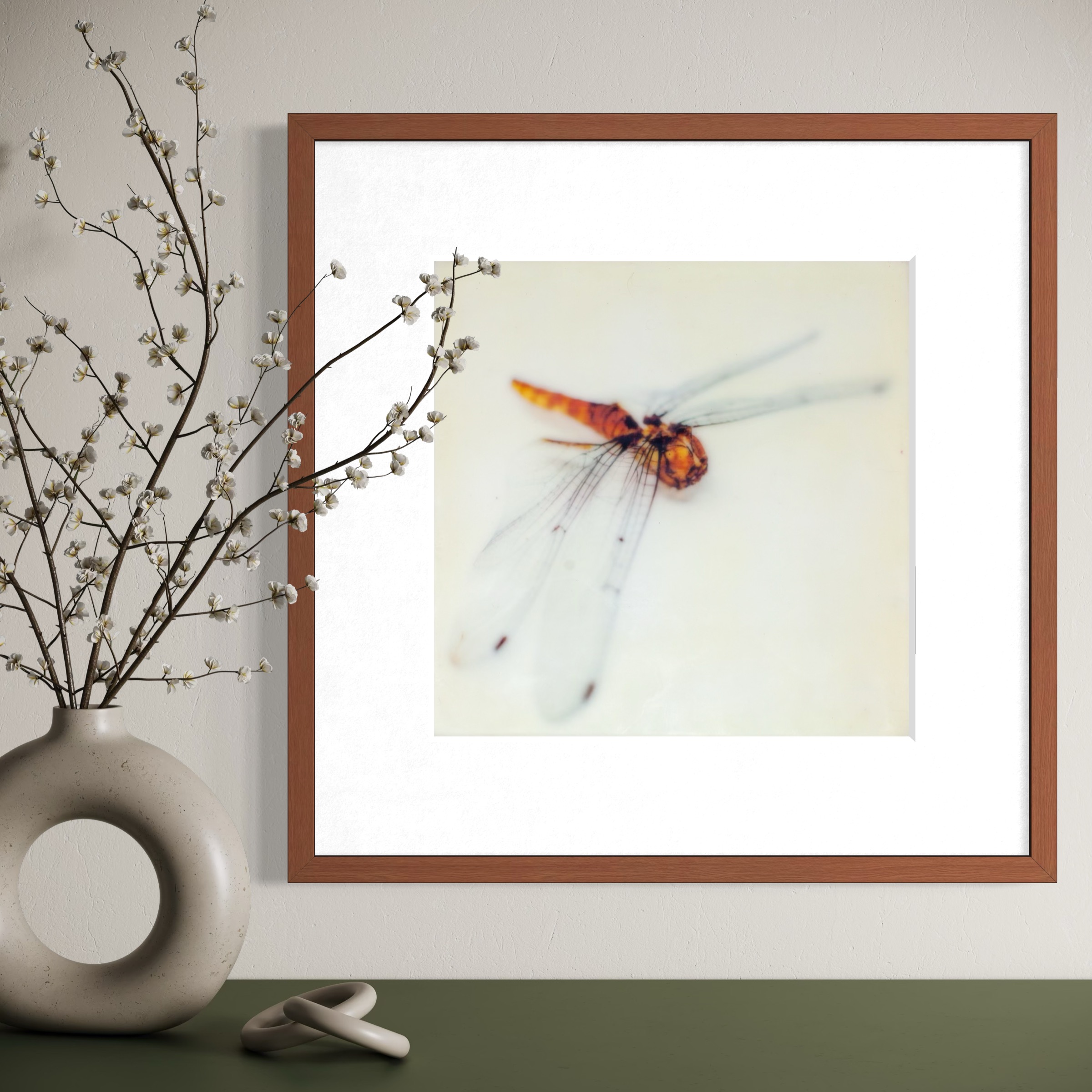 Take flight with this beautiful dragonfly. This dragonfly is an original art piece created using a closeup photographic lens. The image was printed on rice paper and painted with encaustic wax on a wood panel.