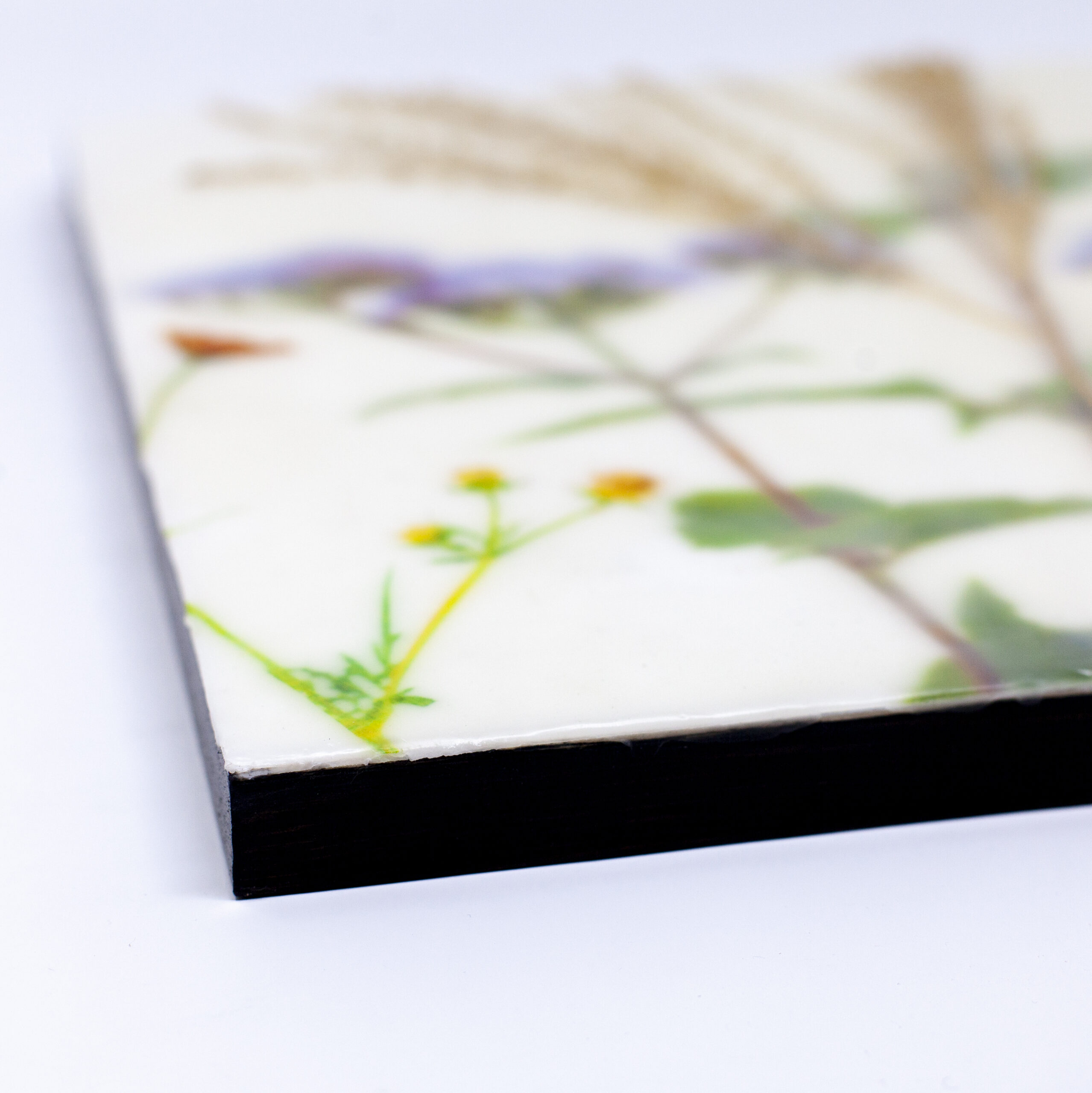 Botanical Encaustic. beeswax, damar resin, rice paper, mica powder, hardboard.