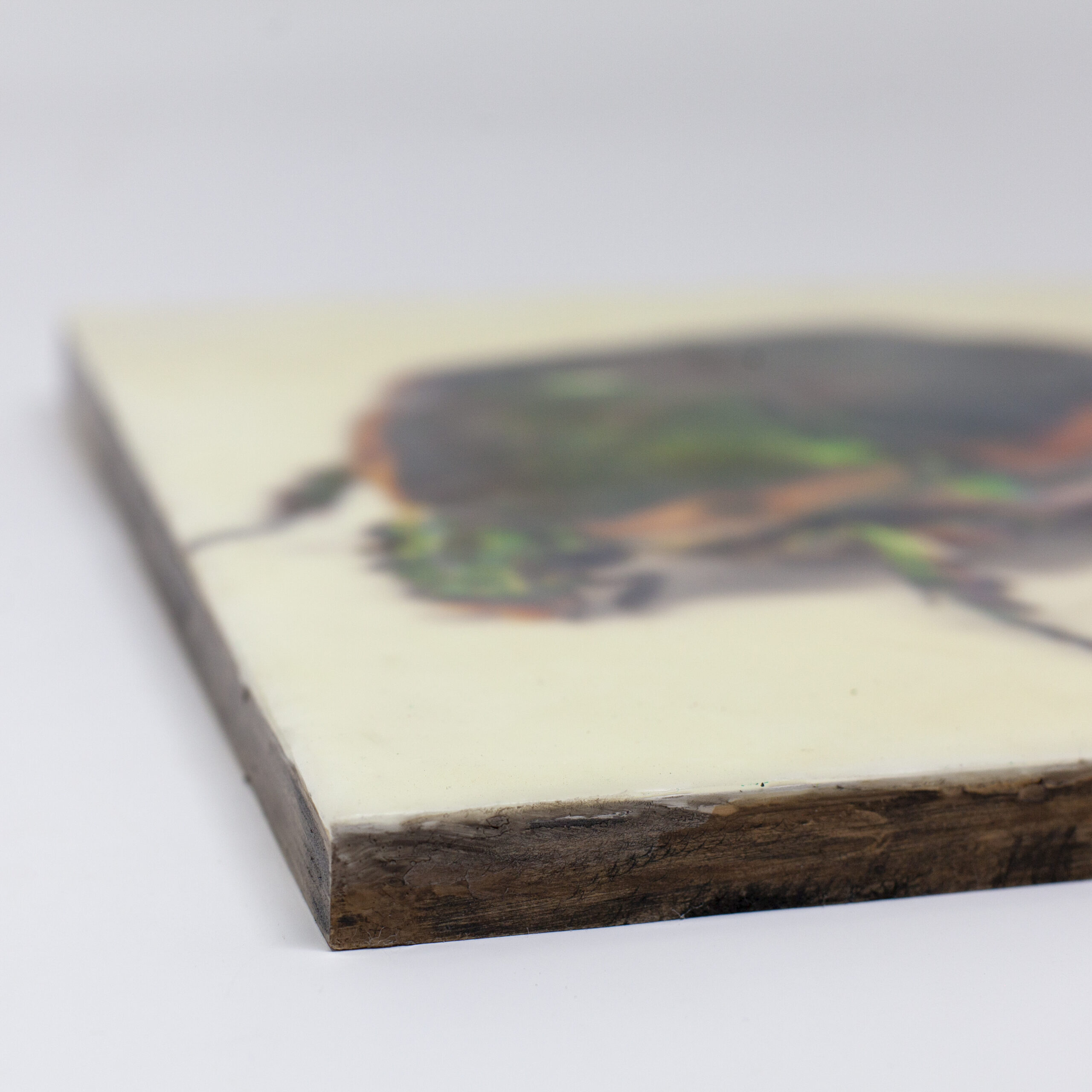 Photography Encaustic. encaustic wax, rice paper, wood panel, photography. 12″ x 12″.
