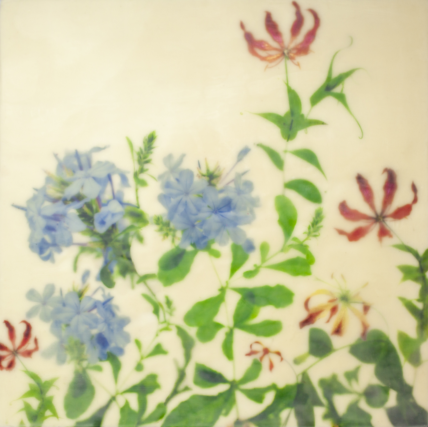 Botanical Photo Encaustic. encaustic wax, rice paper, mica powder, wood panel, photography